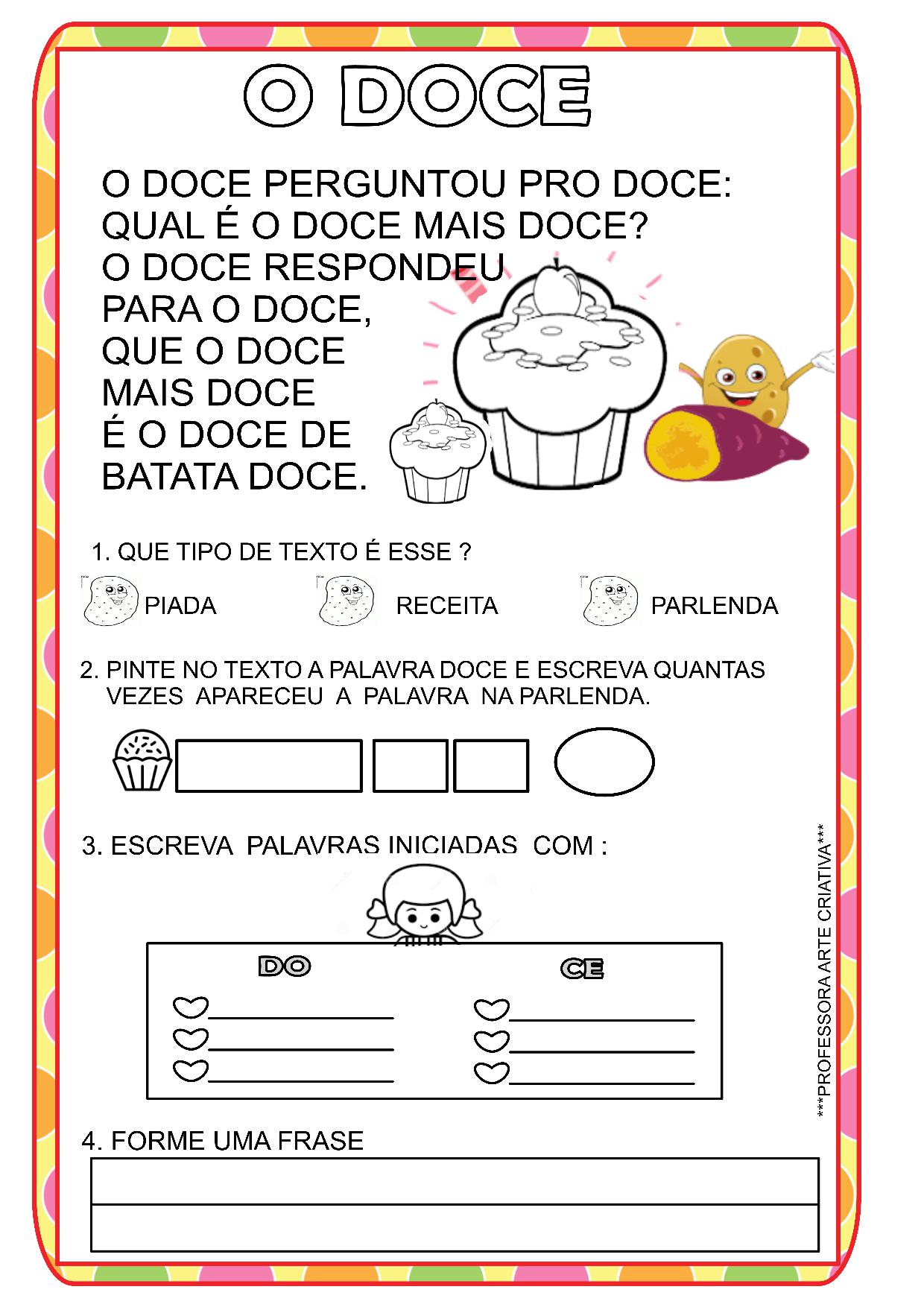 2.TRABALHAR A RECEITA DO DOCE QUE PREPAROU NO QUADRO.