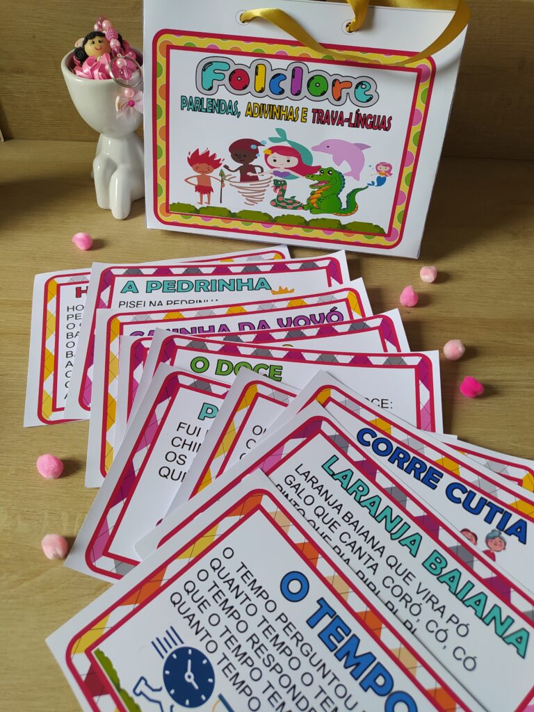 O kit é composto por 10 parlendas, adivinhas, trava-lingua, parlenda recortada para montar e uma ficha de atividade para o aluno realizar em casa ou em sala. Você também receberá ideias e dicas para trabalhar com o kit em sala de aula.